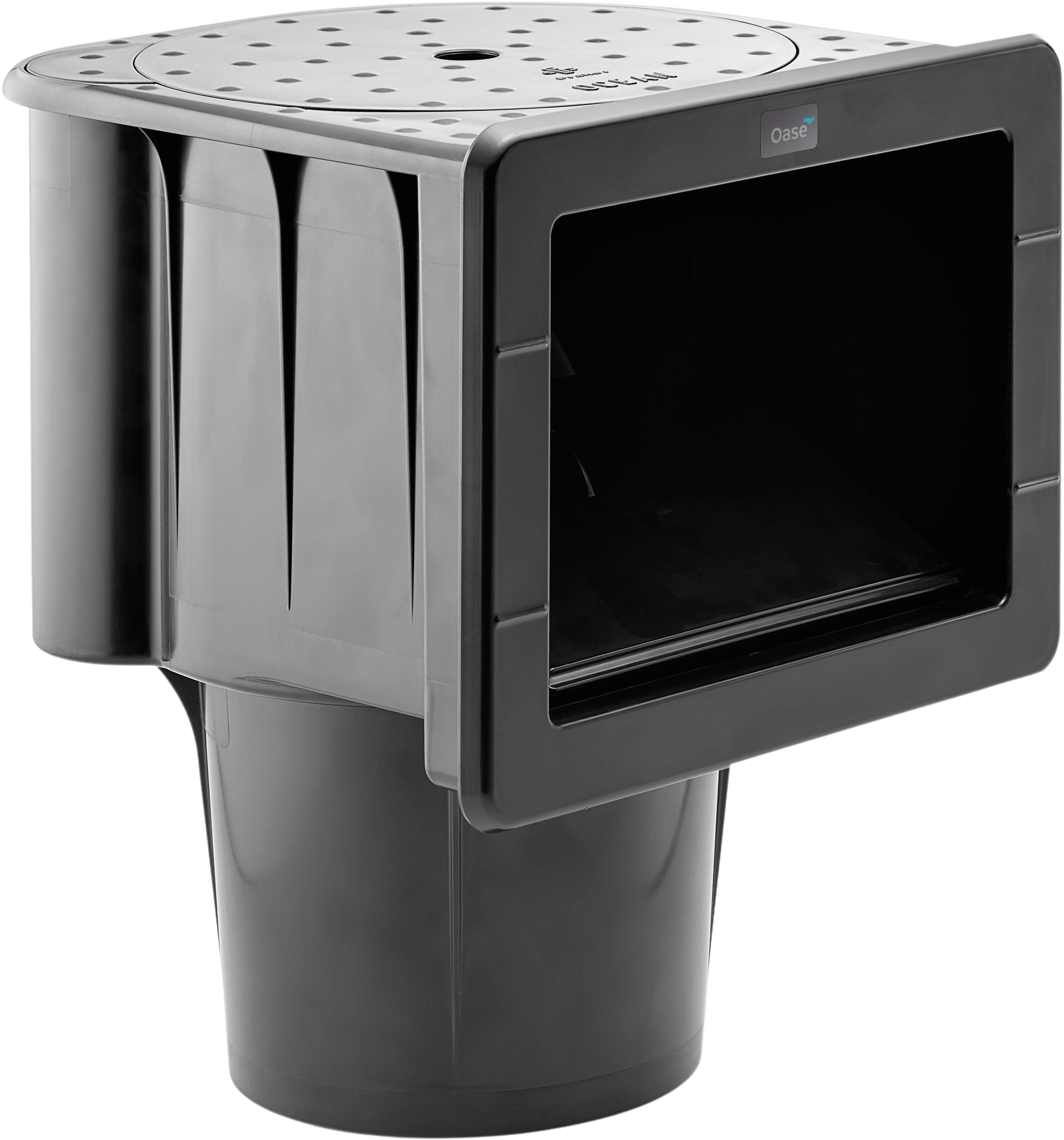 Grâce au large raccord DN 110, le flux d’eau demeure optimal, ce qui rend le système particulièrement adapté aux installations de filtration gravitaire. Des accessoires optionnels, tels que des rallonges ou des façades en acier inoxydable, permettent une intégration harmonieuse dans l’aménagement de la berge.