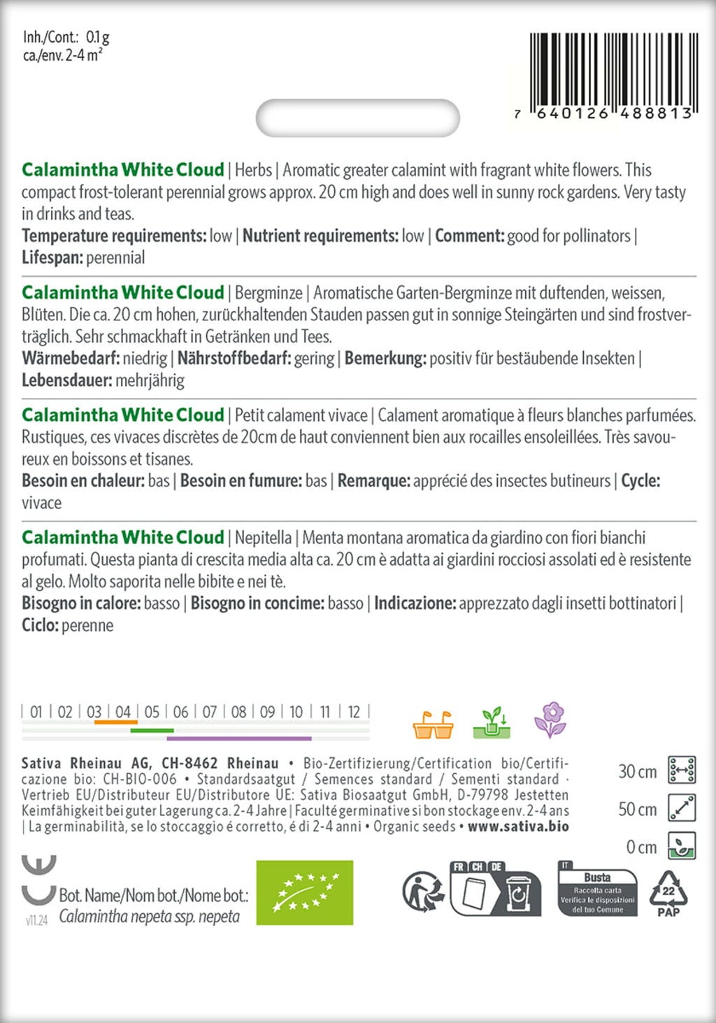 Sativa Petit Calament Vivace Bio "Calamintha White Cloud", 0,10 g CHF 3.28 (CHF 32 800.00 / kg)