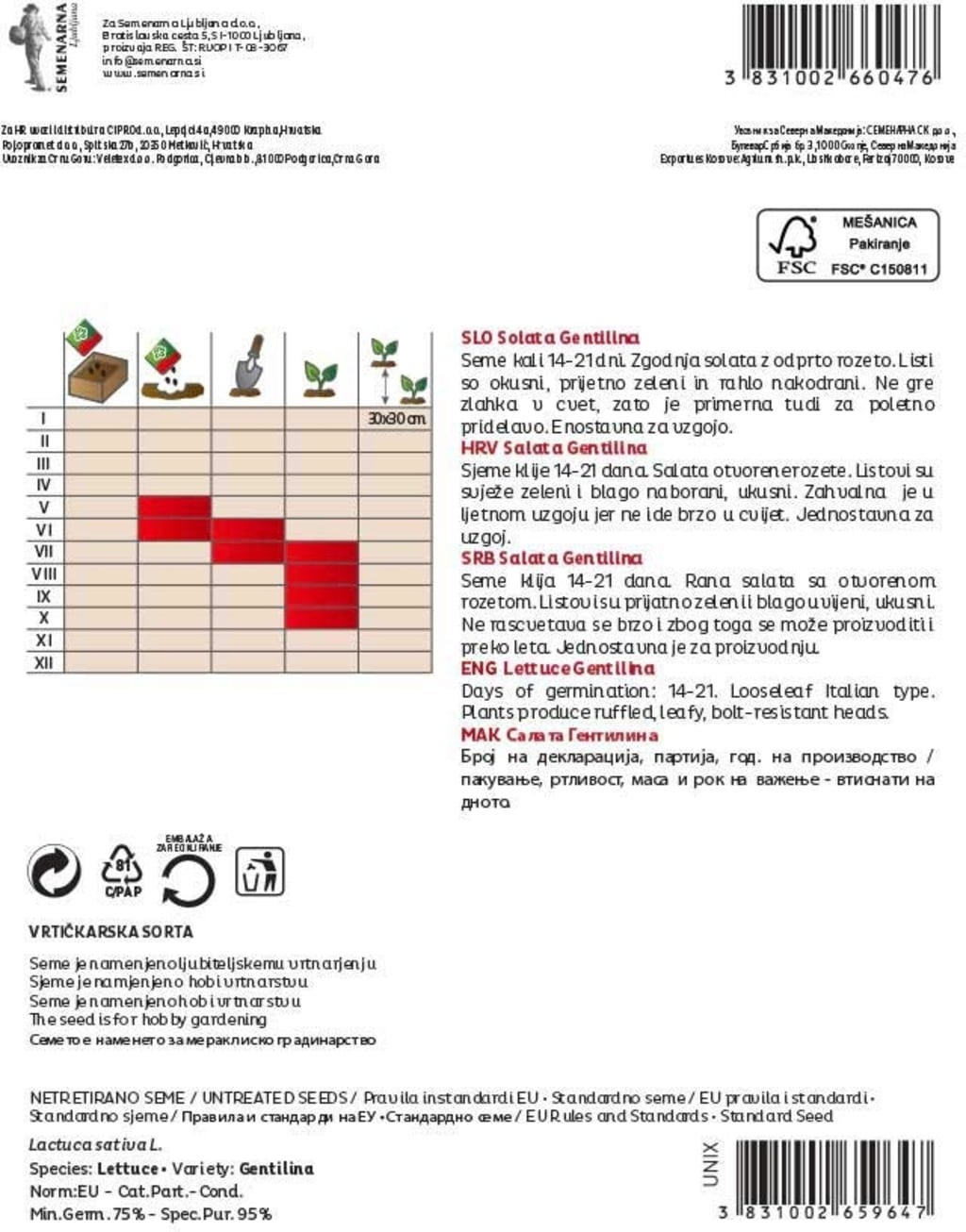Semenarna Ljubljana Graines de Laitue à Couper "Gentilina", 5 g