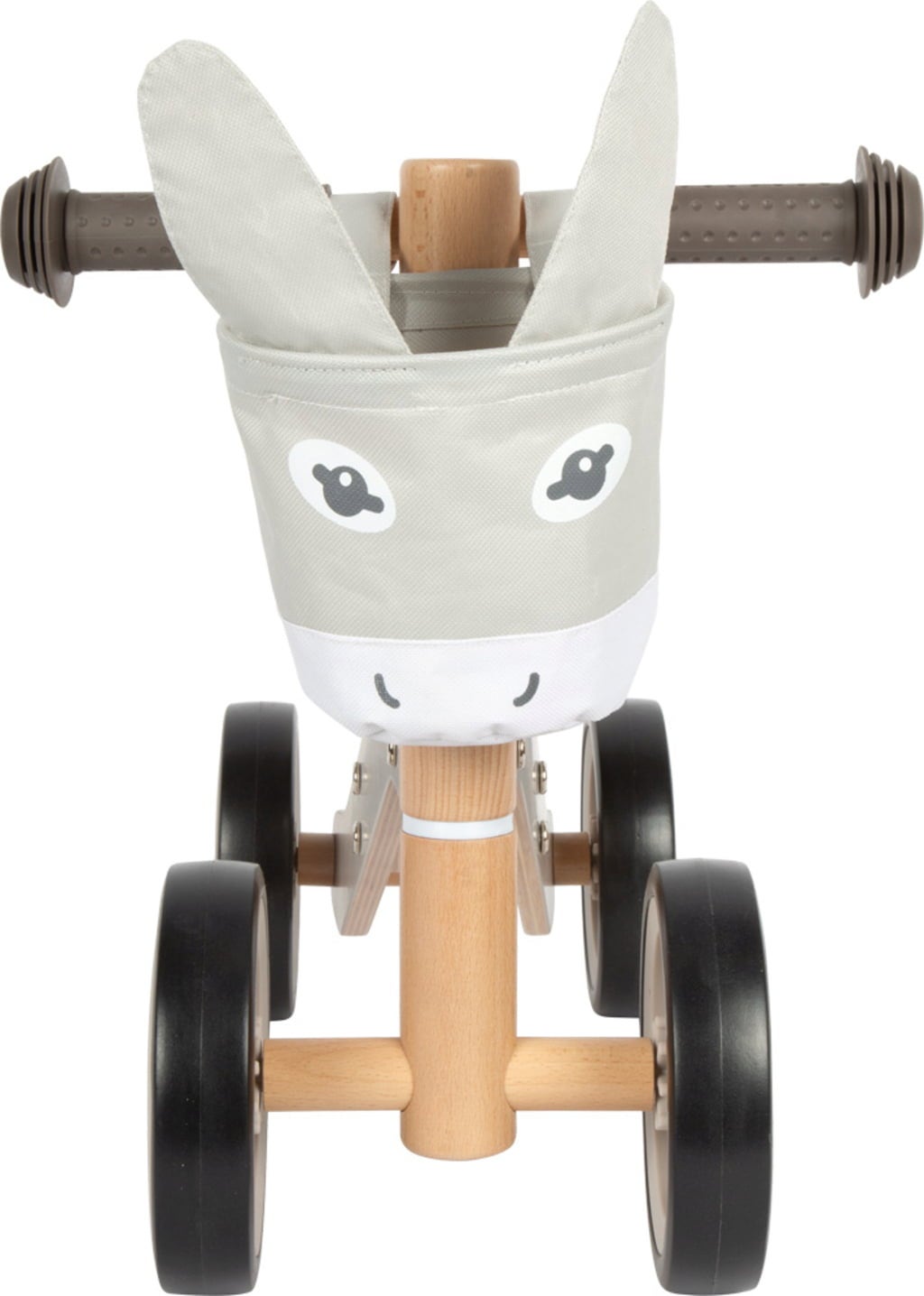Avec ce porteur au design d'âne plein de charme, apprendre à marcher devient encore plus amusant ! Ce porteur en bois robuste séduit par son esthétique soignée et sa sacoche amovible en forme d’âne fixée au guidon, mais aussi par ses nombreux détails bien pensés pour accompagner votre enfant en toute sécurité et confort. À la maison comme en déplacement, la peluche préférée y trouve facilement sa place, tandis que le siège réglable et les roues arrière rapprochées facilitent l'impulsion et assurent un confort de conduite optimal.
