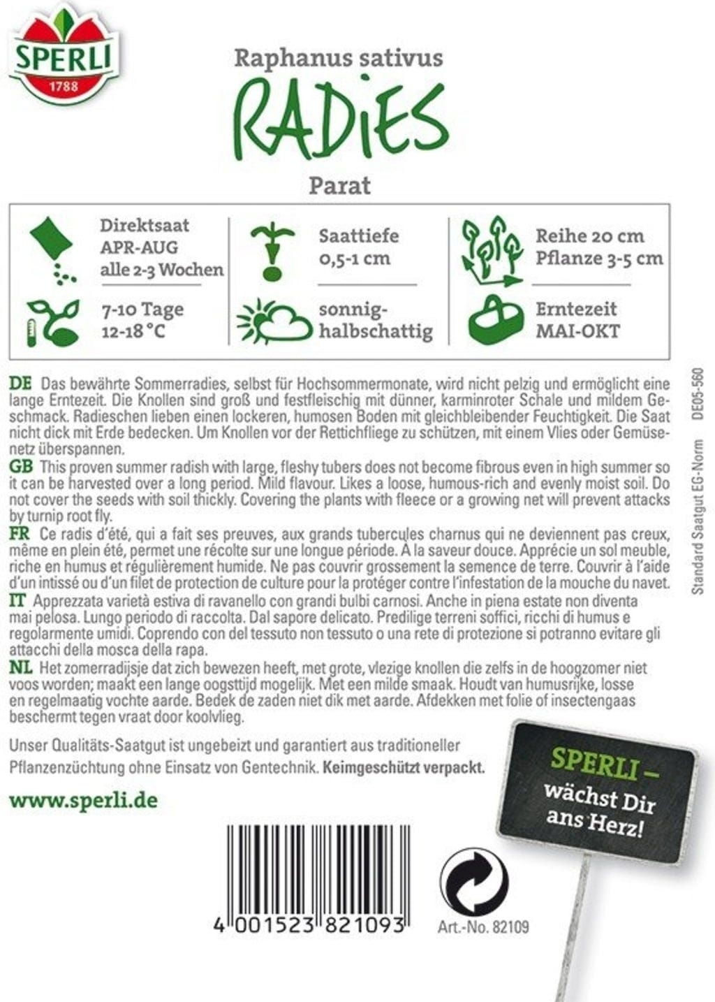 avis en français à propos du produit Sperli Radis d'Eté « Parat »
