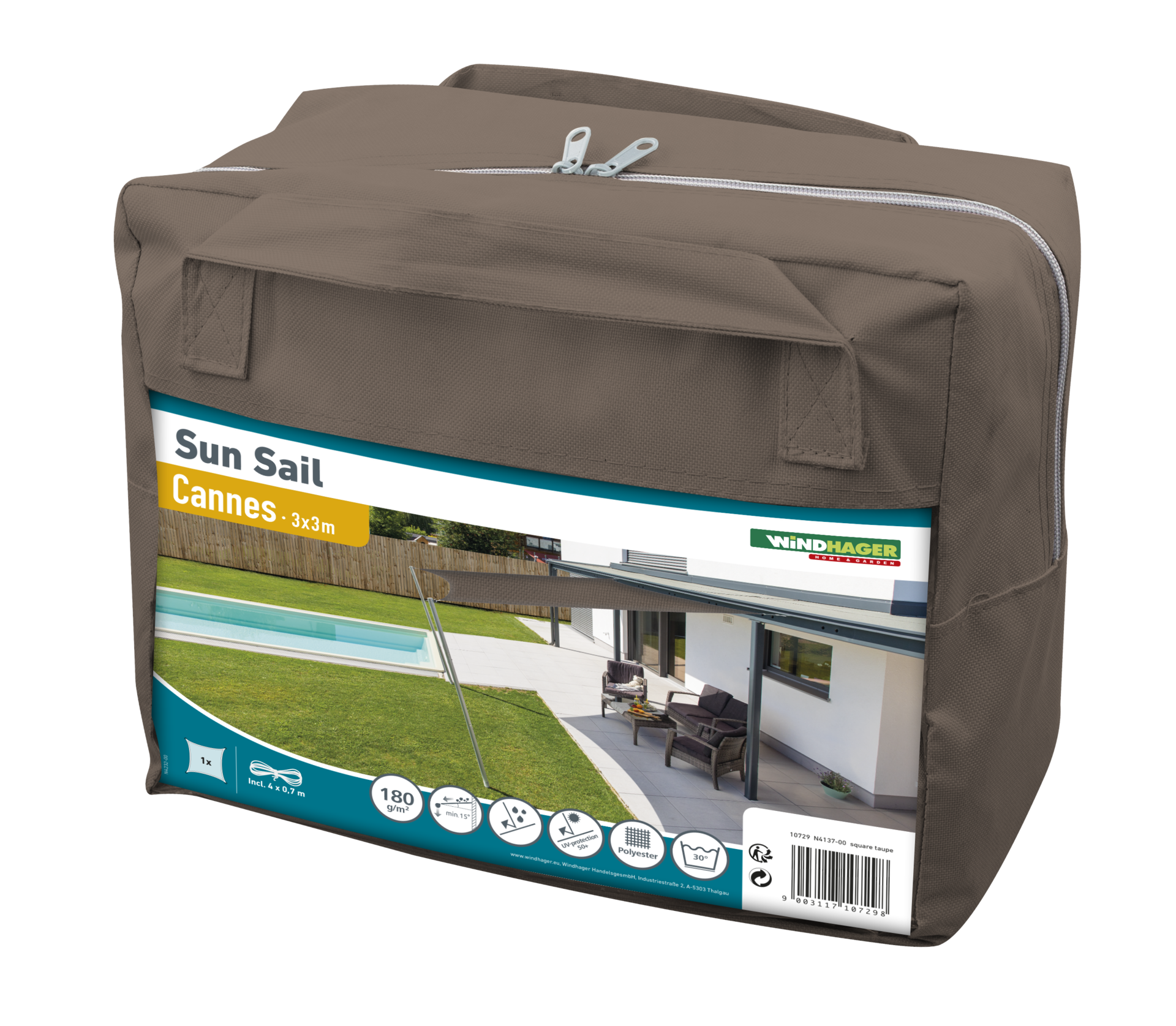 Windhager Auvent SunSail CANNES Carré 3x3m, Taupe
