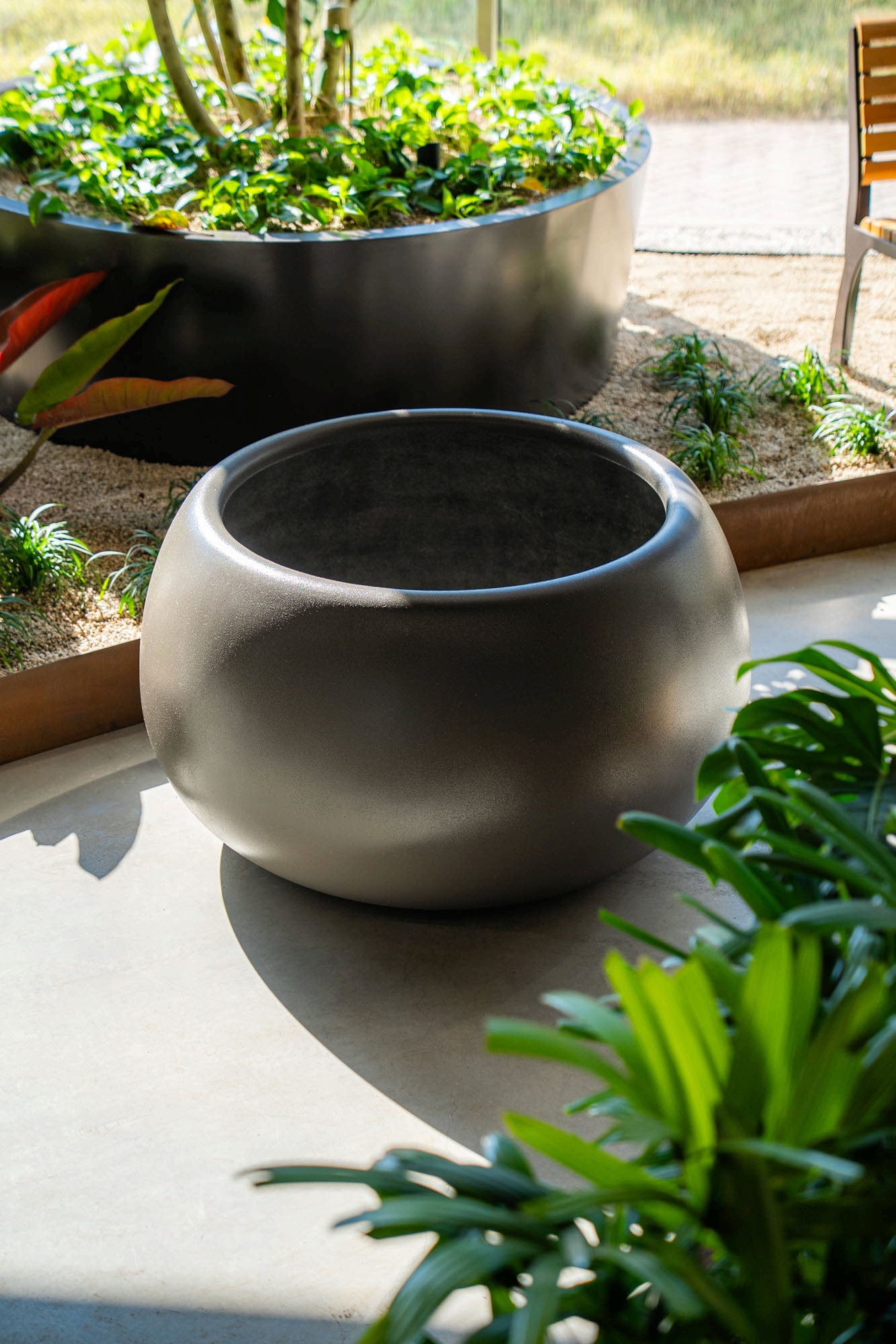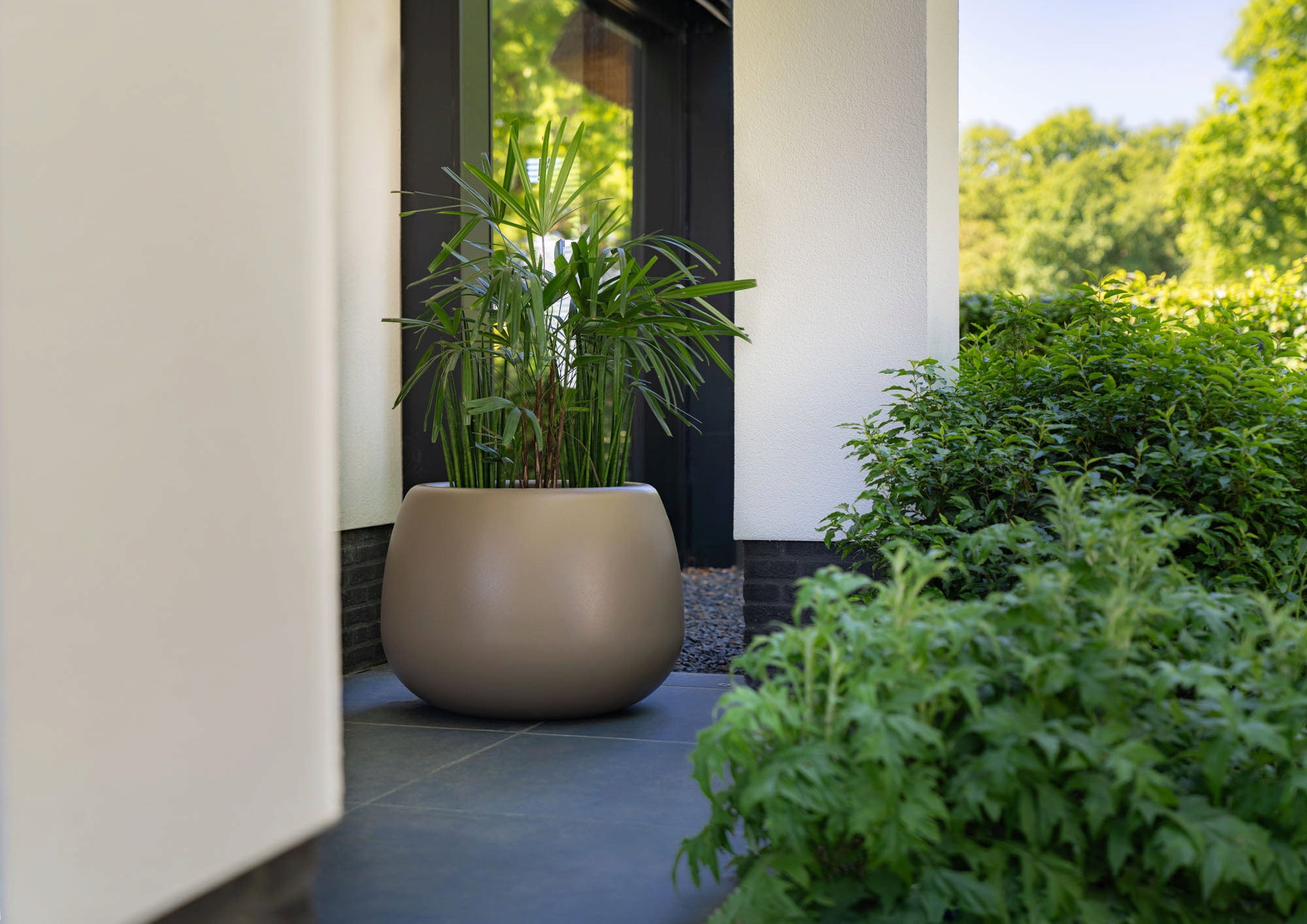 Con la sua forma delicatamente arrotondata in grigio terra naturale, la fioriera Mero emana equilibrio e tranquillità . Si integra armoniosamente in uno spazio esterno dal design elegante e in un ambiente naturalmente verde, contribuendo a creare un'atmosfera piacevole in giardino o in terrazza. Aggiungendo così un tocco estetico incomparabile ad ogni casa.
