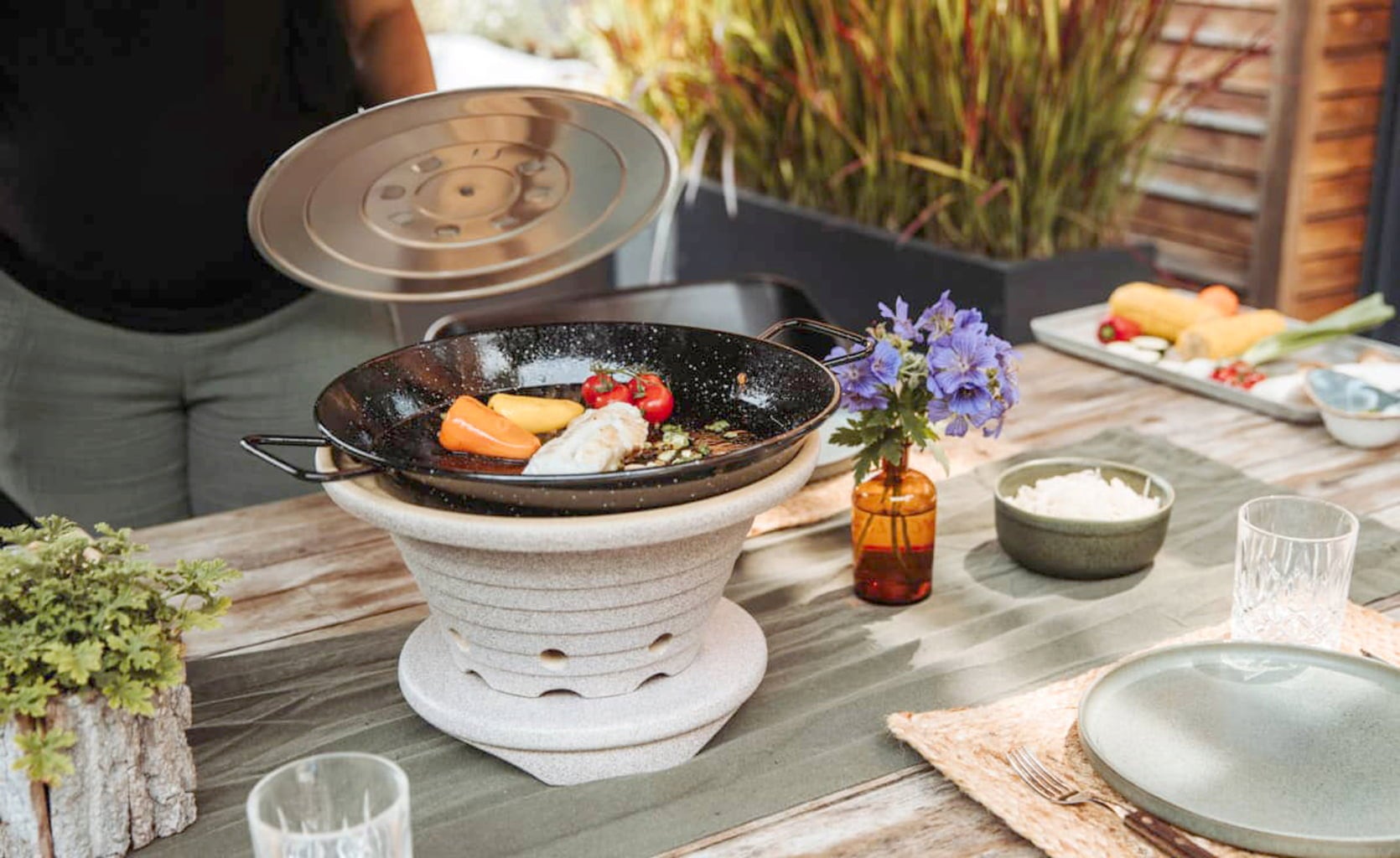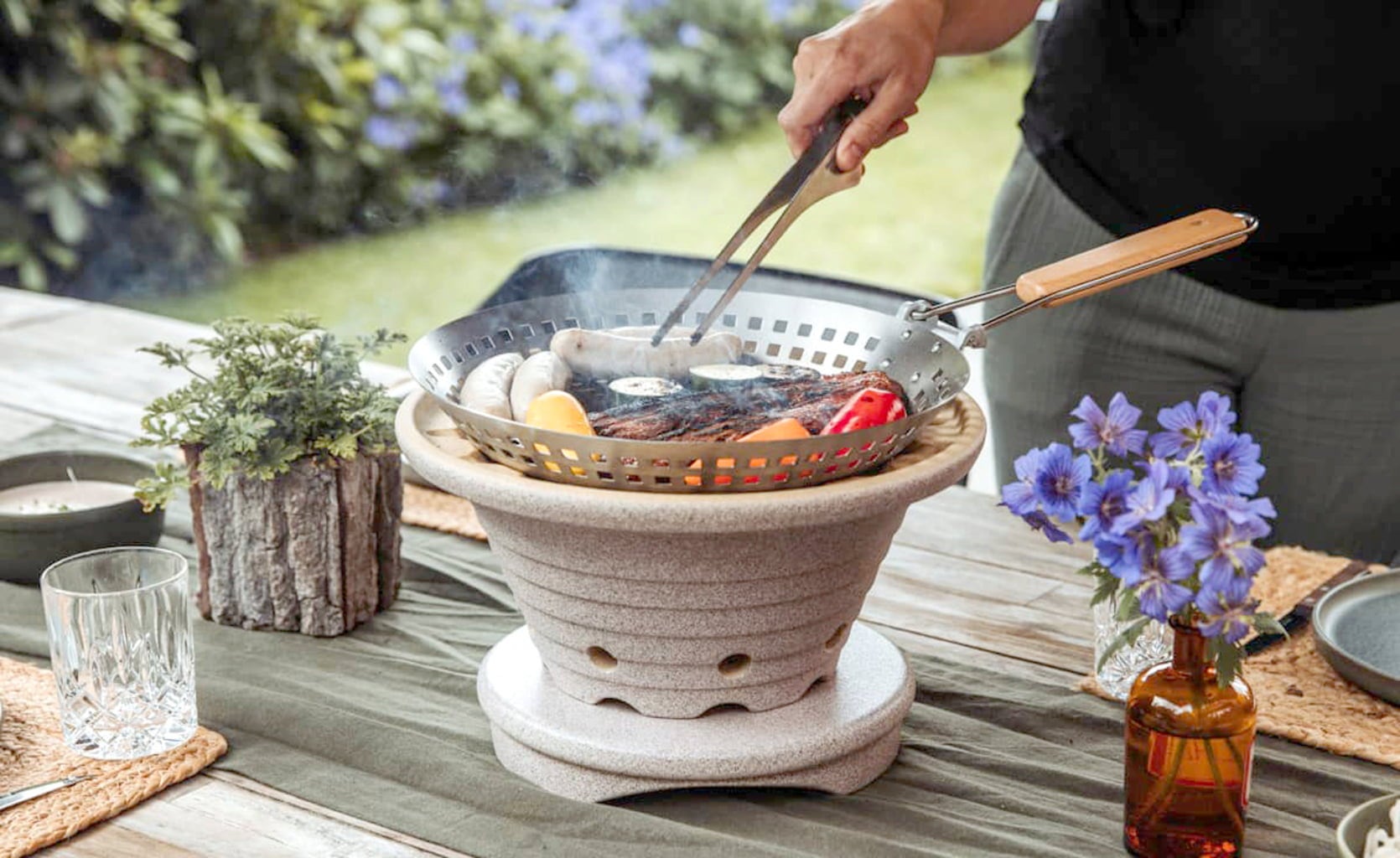 Atmosfera di barbecue in ogni stagione! Con l’ingegnoso set barbecue da tavolo con base di Denk Keramik non è un problema. Perfetto per serate conviviali sul balcone, in terrazza o in giardino. Particolarmente accogliente: si può grigliare direttamente a tavola.