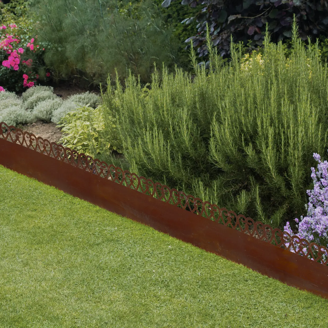 Una bordura per aiuole dall'attraente finitura ruggine che dona al giardino un look romantico e naturale, contribuendo allo stesso tempo a creare ordine e struttura. La forma flessibile permette di adattarla facilmente anche a curve e angoli.
