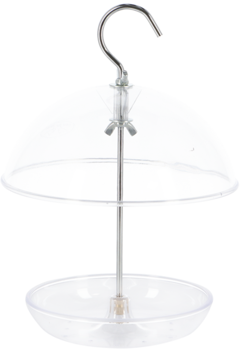 Questa pratica mangiatoia protegge il cibo in modo affidabile dalla pioggia grazie al tetto a cupola. Il materiale trasparente consente di osservare facilmente gli uccelli mentre si nutrono. Con gancio integrato per un posizionamento versatile in giardino o sul balcone.