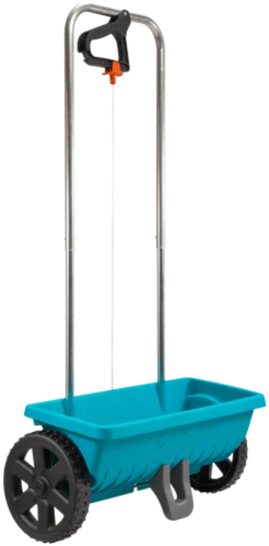 Lo spandiconcime L di GARDENA è l'aiutante numero uno per il giardino, sia d'estate che d'inverno. Che si tratti di seminare, concimare o spargere materiale su vialetti e passi carrai, è universalmente applicabile, affidabile e robusto. La regolazione del dosaggio e della quantità è semplice ed ergonomica, controllata manualmente tramite la comoda funzione on/off e un cursore. Grazie allo speciale rullo spanditore, il materiale viene distribuito uniformemente, mentre la striscia di tenuta brevettata con labbro in plastica morbida impedisce la fuoriuscita del materiale dopo l'uso ed evita sprechi indesiderati. Lo spandiconcime è inoltre facile da manovrare e le sue ruote con cuscinetti a sfera garantiscono non solo una presa sicura, ma anche una trazione ottimale su qualsiasi superficie.