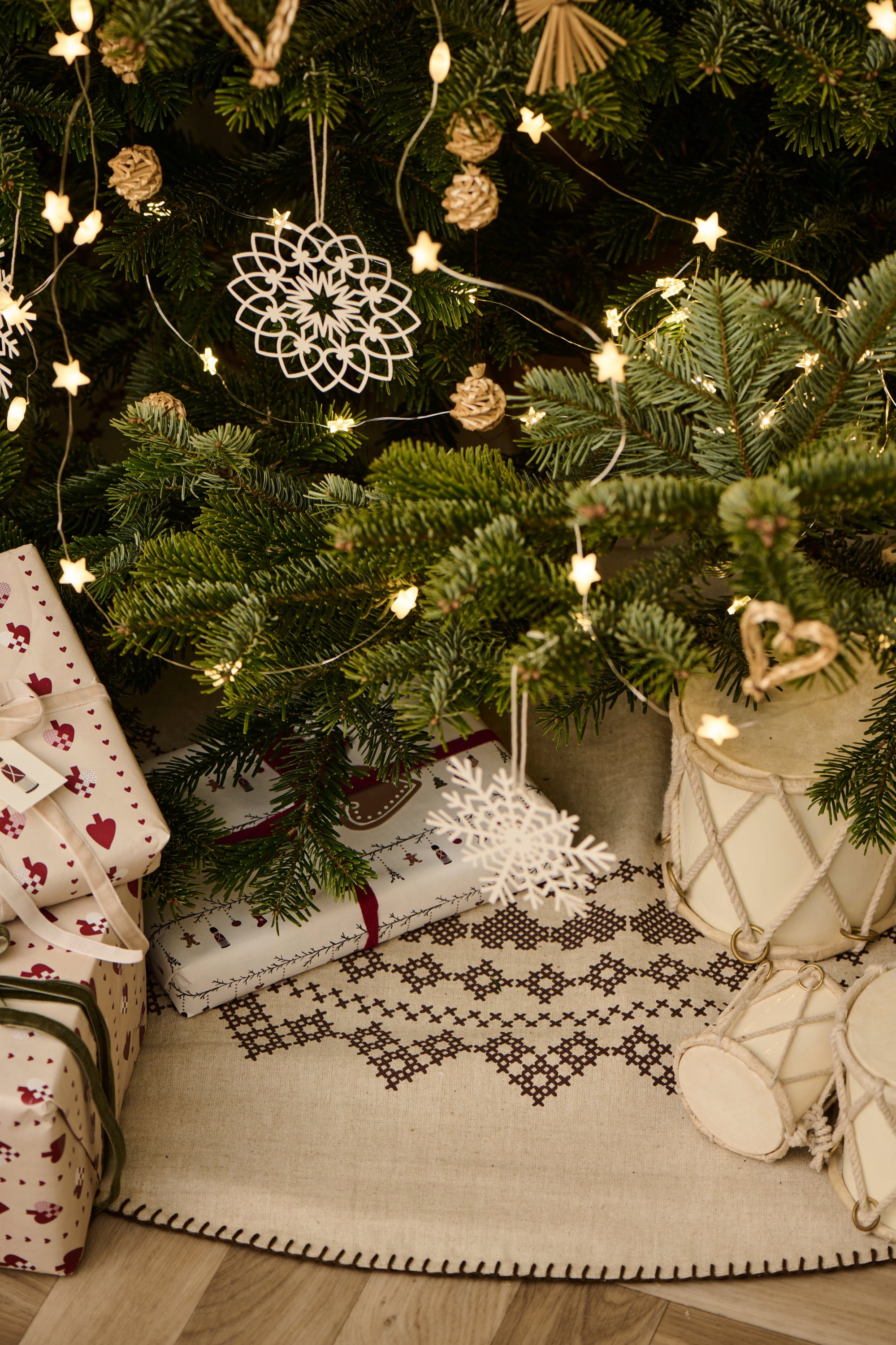 Questo tappeto per albero di Natale emana un magico fascino retrò con i suoi ricami intricati e si abbina perfettamente agli alberi di Natale decorati in modo naturale, rendendo il periodo natalizio ancora più suggestivo.