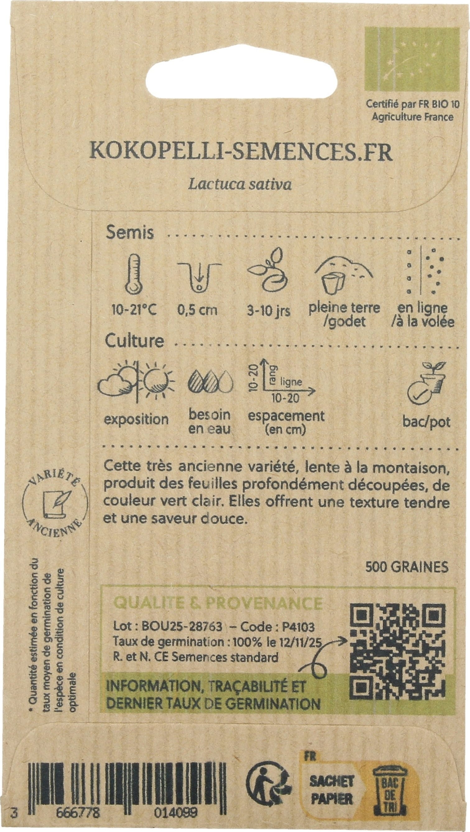 | Produttore: | Association Kokopelli, 7 Route de Sabarat, Foret de Castagnes, 09290, Le Mas D'Azil, Francia, professionnels@kokopelli-semences.fr, www.kokopelli-semences.fr |