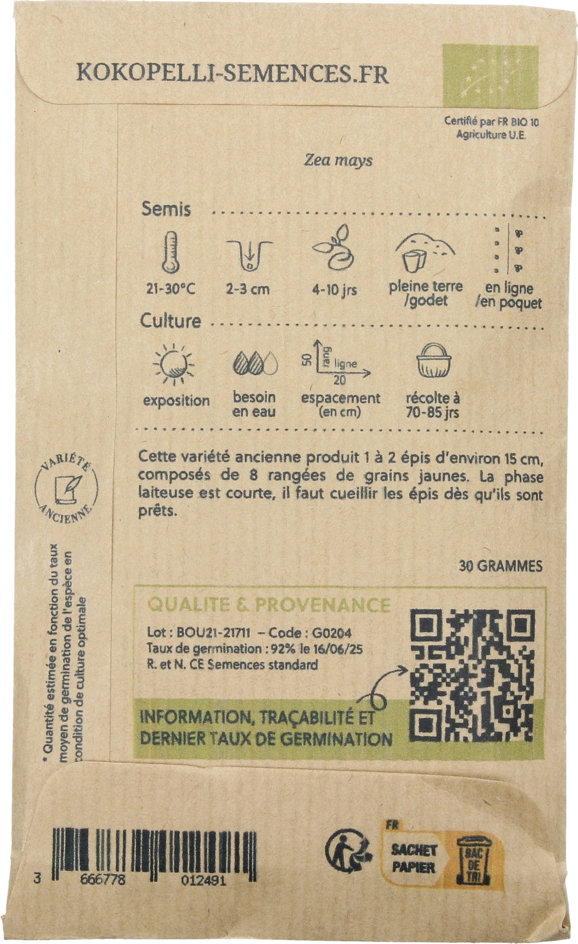 | Produttore: | Association Kokopelli, 7 Route de Sabarat, Foret de Castagnes, 09290, Le Mas D'Azil, Francia, professionnels@kokopelli-semences.fr, www.kokopelli-semences.fr |