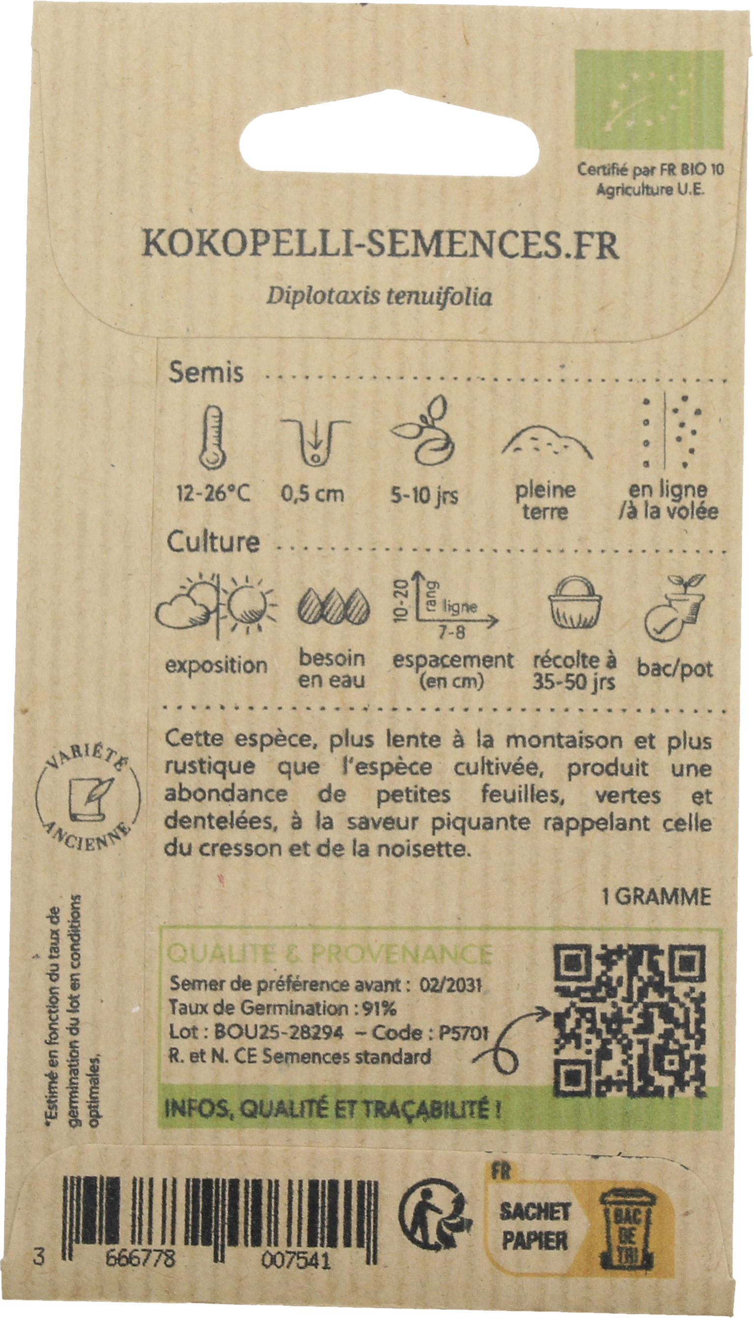 | Produttore: | Association Kokopelli, 7 Route de Sabarat, Foret de Castagnes, 09290, Le Mas D'Azil, Francia, professionnels@kokopelli-semences.fr, www.kokopelli-semences.fr |
