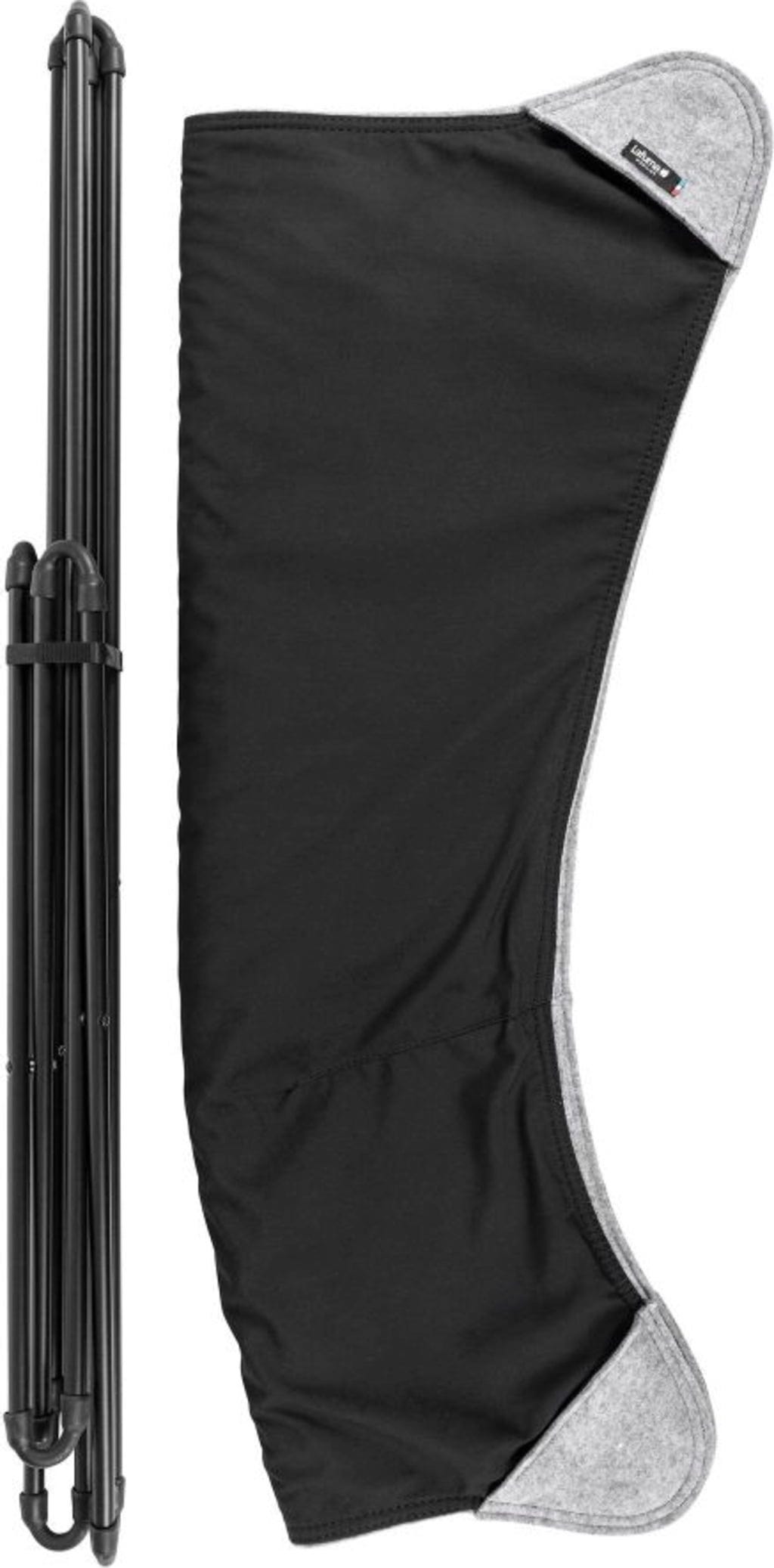 - Cinghia in poliestere rimovibile con gancio per il fissaggio in posizione piegata.
