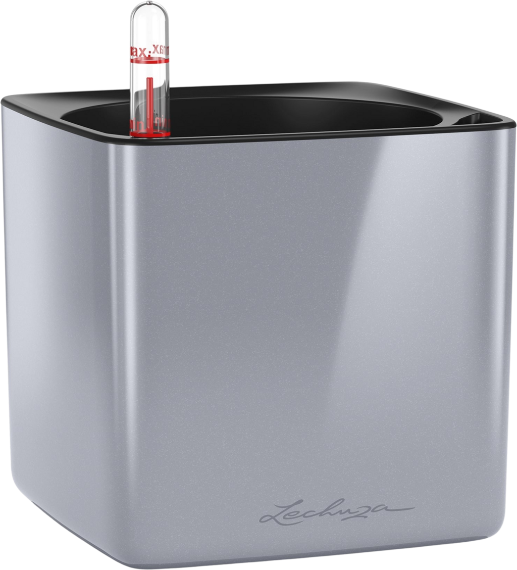Lechuza Vaso da Tavolo - CUBE Premium 14, Titanium dust highgloss
