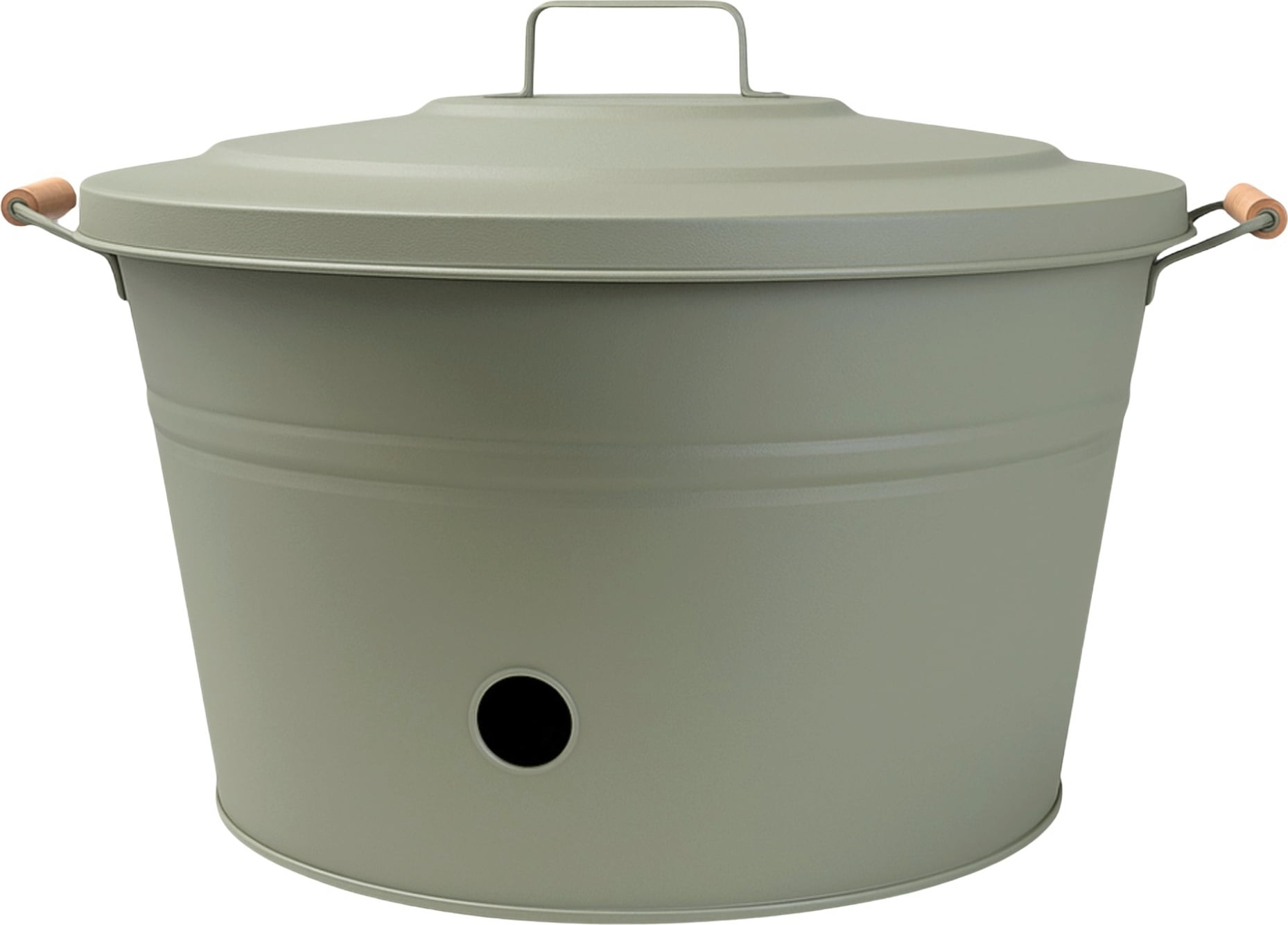 - Bidone e coperchio in metallo zincato a caldo e verniciato a polvere.