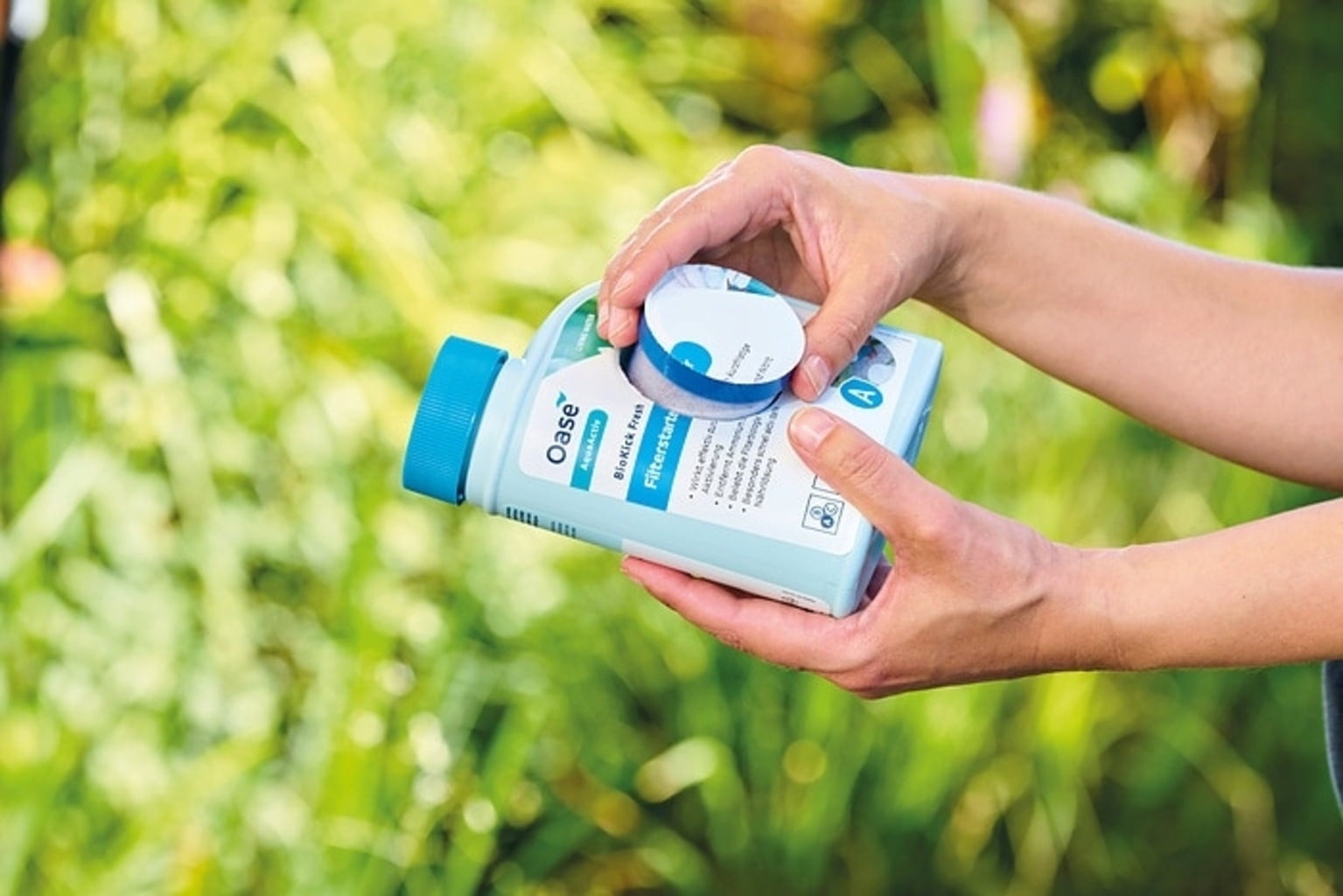- AquaActiv Biokick Fresh di Oase è composto da due componenti, batteri essiccati e una soluzione nutritiva. Questi due vengono mescolati insieme solo poco prima dell'uso.
