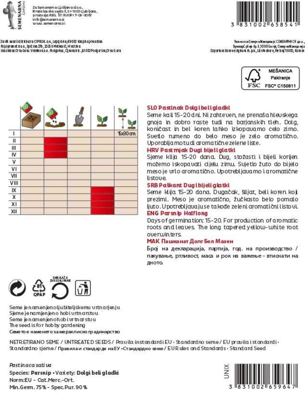 | Produttore: | Semenarna Ljubljana d.o.o., Bratislavska Cesta 5, 1000, Ljubljana, Slovenia, info@semenarna.si, www.semenarna.si |