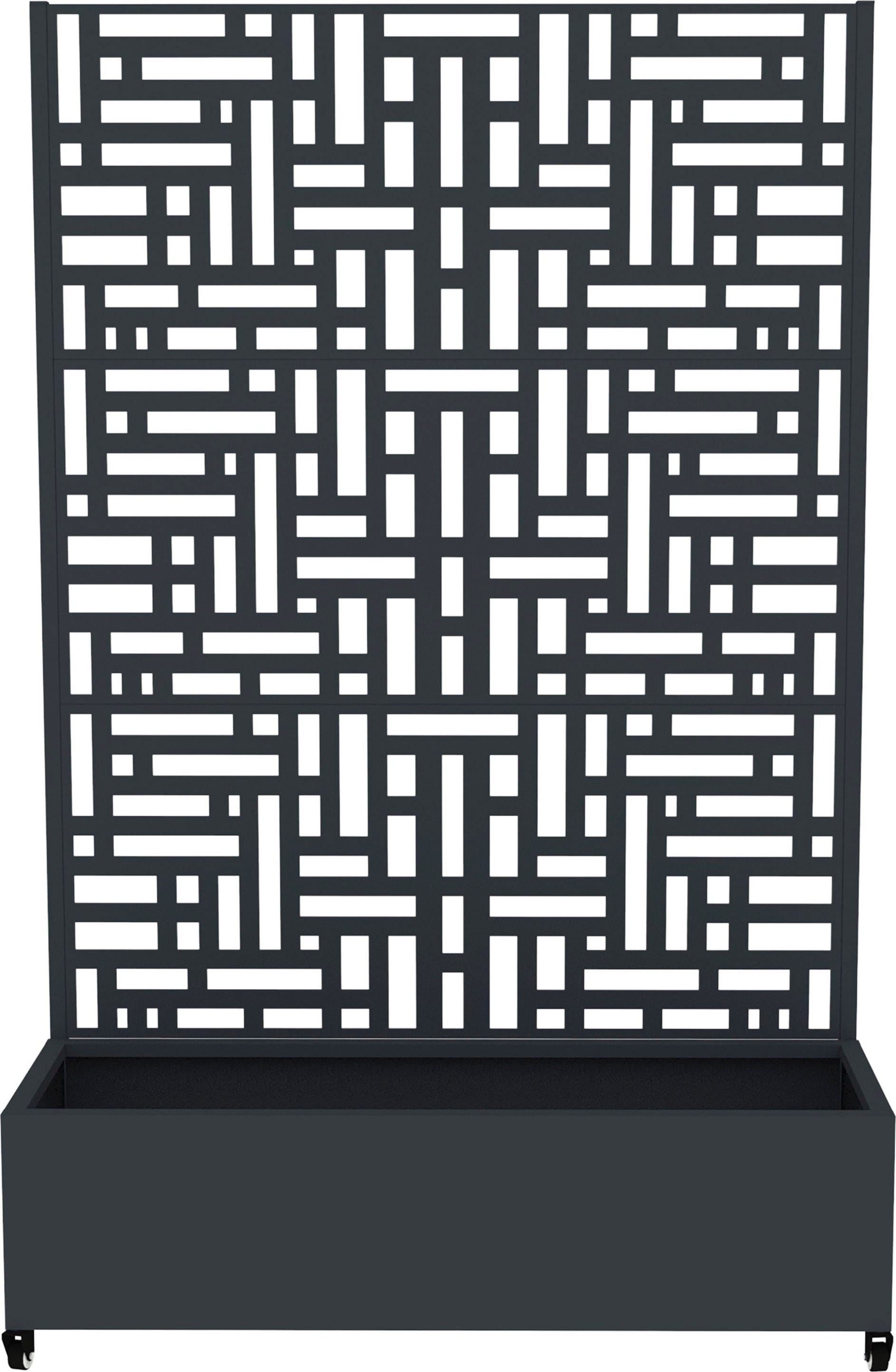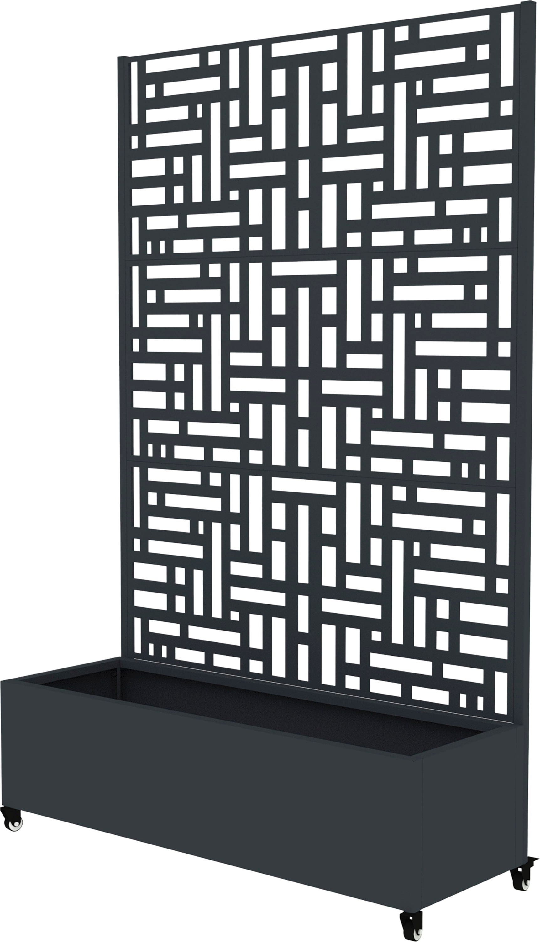 Questa fioriera su ruote è un contenitore per piante flessibile nel posizionamento che può essere utilizzato anche come schermatura visiva. Il suo motivo ricercato e decorativo cattura subito lo sguardo, sia quando protegge da occhi indiscreti sia quando sostiene le piante rampicanti nella loro crescita. Realizzata in acciaio verniciato a polvere, è resistente agli agenti atmosferici e pensata per un uso esterno senza limitazioni. Inoltre, la fioriera Dekora è dotata di fori di drenaggio che impediscono la formazione di ristagni d'acqua dannosi.